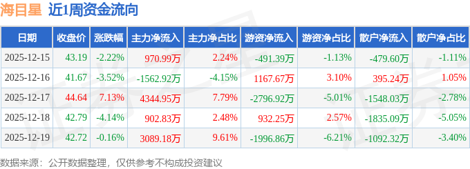 资金流向数据方面,本周海目星主力资金合计净流入7745.04万元,游资资金合计净流出3185.24万元,散户资金合计净流出4559.8万元。本周资金流向一览见下表: