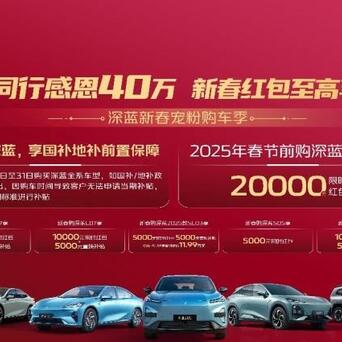 深蓝汽车表示,在1月1日-1月31日锁单的用户,可享受国家补贴和地方补贴的前置保障;春节前(截至28日)锁单的消费者,再额外提供至高20000 元限时现金红包。