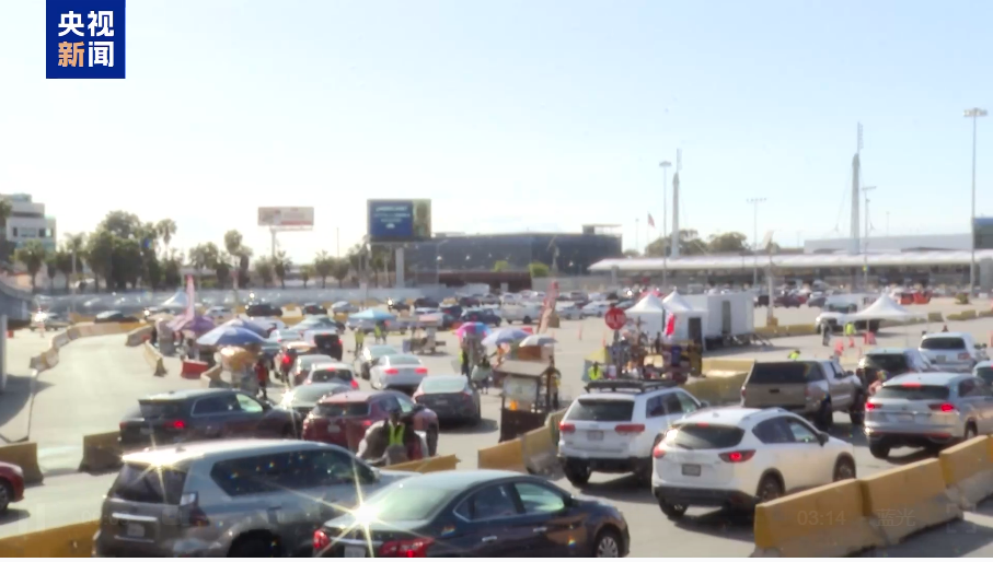 总台记者 肖贺佳:这里是蒂华纳当地最大的一个农贸市场。我来到农贸市场的停车场,发现一个有趣的现象,就是这里停的很多车都挂美国加利福尼亚州的车牌。包括我刚刚指的那一辆车,还有我左手边的这两辆车,全都是加利福尼亚州的。我们做了一个简单的统计,就是在这个停车场停的车,有一半以上都是美国来的车。